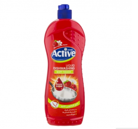 محصول نمونه تستی مایع ظرفشویی قرمز اکتیو حاوی گلیسیرین 750 گرمی با رایحه توت فرنگی